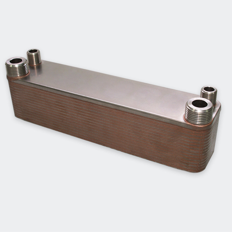 El intercambiador de calor de placas tiene múltiples utilidades, de forma compacta, medidas reducidas y peso ligero, nos asegura un alto rendimiento de transferencia del calor, debido a la unión de placas en relieve técnicamente unidas, esto nos asegura las más altas temperaturas de funcionamiento y presiones de trabajo, fabricado en cobre con acabado en acero inoxidable, asegura una buena resistencia a la corrosión, la instalación y mantenimiento se realiza de forma directa y sencilla.