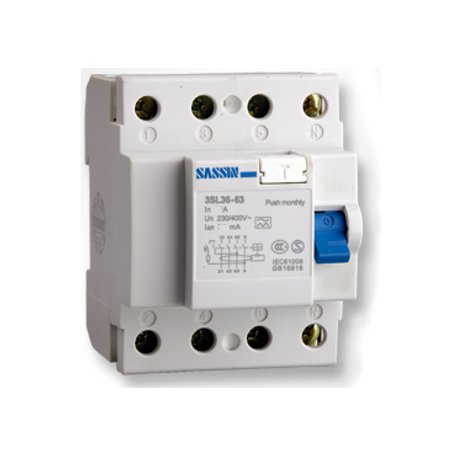 Diferencial Sassin serie 3SL36 residencial. 2 P, 25A, 10mA.(Ideal Hidromasajes) Clase AC. 6kA