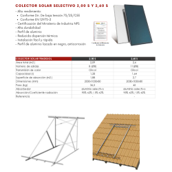 Captador: 1 placa FCE2.5 de 2,48m2, Interacumulador: 200 litros, Instalación: Suelo o Tejado