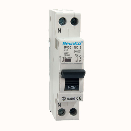 Serie: RV301N, nº Polos: 1P+N, Intensidad: 10A, Poder Corte: 6kA, Curva: C, Empleo: Residencial, Terciario, industrial