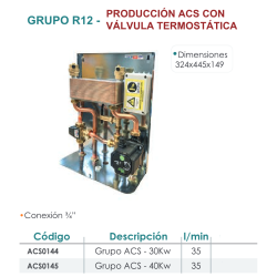 Grupo de mezcla para la producción de ACS instantánea. Dimensiones: 324x445x149, Caudal: 12 l/min