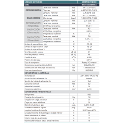 Eficiencia energética Frio: A+++, Calor: A+, 3.440 Frigorias/hora, 3.612 Kcal/h, DB(A)Unidad Exterior: 60, Consumo anual frío: -- kw/h, Consumo anual calor: -- kw/h