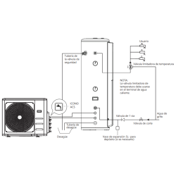 El sistema cuenta con cuatro modos de funcionamiento — Híbrido, ECO, resistencia eléctrica y smart — adaptándose a tus necesidades. En particular, el modo ECO asegura la recuperación de calor sin usar la resistencia eléctrica hasta alcanzar la temperatura deseada, maximizando el ahorro energético. Además, dispone de una resistencia eléctrica incorporada de 2 kW que permite alcanzar hasta 70ºC cuando se necesita un impulso adicional de calor.
