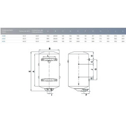 Instalación vertical Acumulador con intercambiador de doble camisa y capacidades de 80, 100 y 150 litros. Entradas al intercambiador a la derecha y a la izquierda. Resistencia de apoyo de 2000W en contacto directo con el agua de máxima eficiencia.