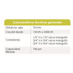 Una de las características destacadas de este kit es la válvula de bola con filtro incorporado y un by-pass de limpieza, que facilita el mantenimiento y asegura la pureza del agua circulante. Con una capacidad filtrante de 700 μm, este sistema es ideal para proteger los componentes del sistema hidráulico de partículas indeseadas, prolongando la vida útil de los equipos.