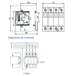 Control de tensión Permanente trifasico modelo Revalco 32A. Nº Polos: 4 (3 Fases + Neutro), Intensidad: 32A, Clase: C, Poder de Corte: 6 kA, Tensión: 400vAC
