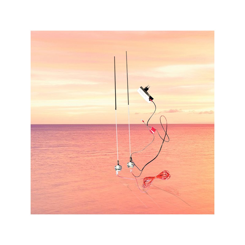 El ánodo está constituido por una varilla de titanio, con la parte extrema activada, e insertada en el otro extremo en un racor de 1”1/4 del que se encuentra aislado eléctricamente. El dispositivo de alimentación se encuentra alojado en una carcasa de material aislante resistente a las condiciones habituales de uso de las centrales térmicas. Consta de un LED de señalización luminosa colocado en la parte frontal del dispositivo. Dicha señalización permite conocer el funcionamiento del dispositivo: LUZ VERDE corresponde con un modo de funcionamiento adecuado (se aporta corriente impresa), mientras que la LUZ ROJA indica un funcionamiento anómalo.