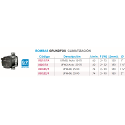 Especificaciones técnicas de la Bomba Grundfos UPM3 15/70