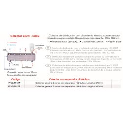 Adecuado para instalaciones de hasta 70 kW (en función del aumento de temperatura ΔT=20K en el circuito primario), este colector ha sido sometido a pruebas hidráulicas de hasta 12 bar, asegurando un rendimiento seguro y confiable en sistemas de calefacción exigentes.