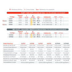 Especificaciones técnicas de la Placa de EPS + Lámina Velcro Suelo Radiante FERCO KLET45