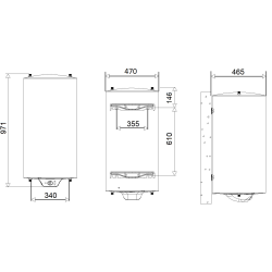 Termo eléctrico de 100 litros de capacidad. El calderín interior está fabricado en acero al carbono laminado en frio de 2 mm de espesor con un recubrimiento de esmalte vitrificado en horno a 860ºC de 220µ de espesor que le confiere una protección adecuada contra la corrosión. Además, el aparato incorpora un ánodo de magnesio (Ø20x300mm) que funciona como protección adicional. La parte cilíndrica del cuerpo exterior está fabricada en chapa de acero al carbono de 0.4 mm de espesor recubierta de pintura epoxi-poliéster blanca de 70µ de espesor, las tapas inferior y superior son de plástico ABS de 2.5 mm de espesor y están engarzadas mecánicamente al cilindro. Entre el calderín y el cuerpo exterior presenta un aislamiento de poliuretano expandido de 20 mm de espesor libre de CFC. El termo se cuelga a la pared mediante 2 patas de 2 tornillos cada una que se sujetan directamente a la caldera utilizando 2 tornillos de M8. La citada unión se hace de forma solidaria con el cuerpo exterior que, de este modo queda sujeto al conjunto de forma mecánica. Los agujeros en la pared para colgar el aparato deben de ser de broca de 10 mm y profundidad 50 mm para el caso de paredes de fábrica de ladrillo de 10 cm con mortero incluido. El aparato tiene cuatro tubos de entrada y salida al mismo que permiten ser instalado hasta en 12 posiciones (4 en vertical y 8 en horizontal. La presión nominar del aparato son 9 bar (0.9 MPa) y se controla mediante una válvula hidráulica de seguridad y retención tarada a 10 bar (1.0MPa) suministrada con cada aparato. El calentamiento del agua se produce mediante dos resistencias blindadas bajo vaina de 1000W cada una y 7W/cm2 de carga superficial activables independientemente mediante un interruptor montado en el frontal de la tapa de registro. Ambas resistencias se montan en una brida de acero al carbono esmaltada por lo que pueden ser substituidas sin necesidad de vaciar el aparato. La temperatura se controla mediante un termostato de bulbo tarado a 75ºC que se puede manipular mediante una maneta situada en el frontal de la tapa de registro. En caso de fallo del termostato de regulación actúa un termostato de bulbo de doble seguridad tarado a 105ºC. Clase I, IP24 y clavija de conexión instalada en el mismo de fábrica. Un piloto luminoso situado en el frontal de la tapa de registro indica el funcionamiento de la resistencia. Según la Directiva EuP perfil de consumo ‘M’ y eficiencia energética ‘C’. Las dimensiones totales del producto son 465x470x971 mm y su peso 28.2 kg.