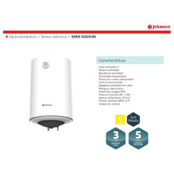 El Termo Eléctrico JOHNSON RADIUM 80 es la solución perfecta para quienes buscan agua caliente inmediata y eficiente sin necesidad de grandes instalaciones. Diseñado para el consumo diario de 2 a 4 personas, este termo ofrece una excelente relación calidad-precio con prestaciones pensadas para el confort, la seguridad y el ahorro energético.