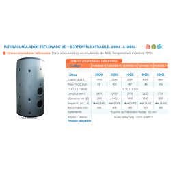 Diseñado con un calderín de acero teflonado de gran resistencia a la corrosión y una capacidad total de 2989 litros, este equipo garantiza un rendimiento excepcional incluso en las condiciones más exigentes. Su serpentín extraíble de 3.2 m² permite una excelente transferencia térmica desde fuentes externas como calderas, sistemas de biomasa o energía solar.