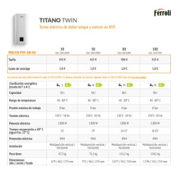 Termo de 90 litros de gama alta con un 20% de ahorro en el consumo eléctrico, Ferroli Titano Twin plus 100 con un consumo anual de 1800 kw/h según etiqueta energética (clase B), todo ello gracias al aislante de poliuretano de alta densidad libre de CFC y la función Smart.