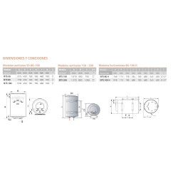 Termo eléctrico cilíndrico de 95 litros reales con doble ánodo de magnesio. Medidas: 96.3x44x45.5 cm, Eficiencia Energética: C, Consumo anual ERP kW/h : 2.769 , Tipo de instalación: Mural vertical/horizontal.