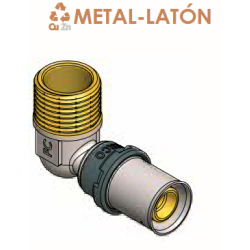 Codo Base Móvil de 20 - ½" con sistema Press Fitting. Fabricado en latón, ideal para instalaciones de aire, ACS y calefacción. Se venden por cajas de 22 unidades.