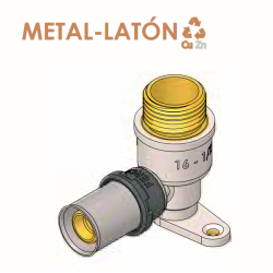 Codo Base Macho 20 - ½" con sistema Push Fit. Fabricado en latón de alta calidad, ideal para ACS, calefacción y energía solar. Se venden en cajas de 18 unidades.