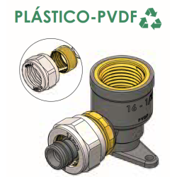 Fabricado en tecnopolímero PVDF, un material plástico avanzado, el codo ofrece numerosas ventajas en comparación con materiales tradicionales. Su diseño interno permite un paso de gran caudal, minimizando pérdidas de carga y garantizando un flujo óptimo. Además, gracias a sus roscas reforzadas y extra largas, asegura un sellado perfecto en cada conexión.